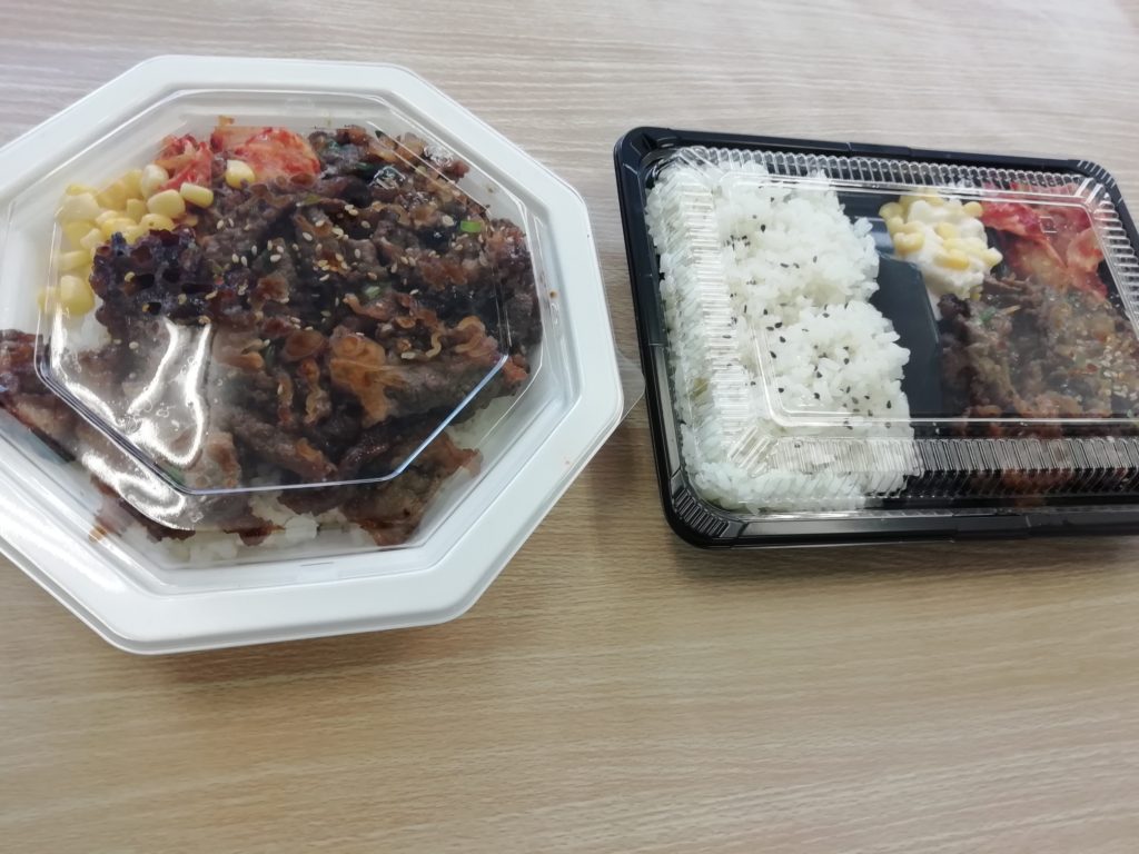 前回はローストビーフ重を注文したので、今回は焼肉弁当と焼肉丼弁当を注文しました。