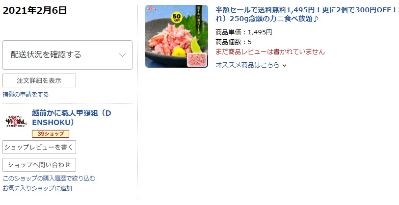 今回初めて冷凍の蟹身を注文したんですけど、冷凍なので長期保存できるし、味もGood♪
