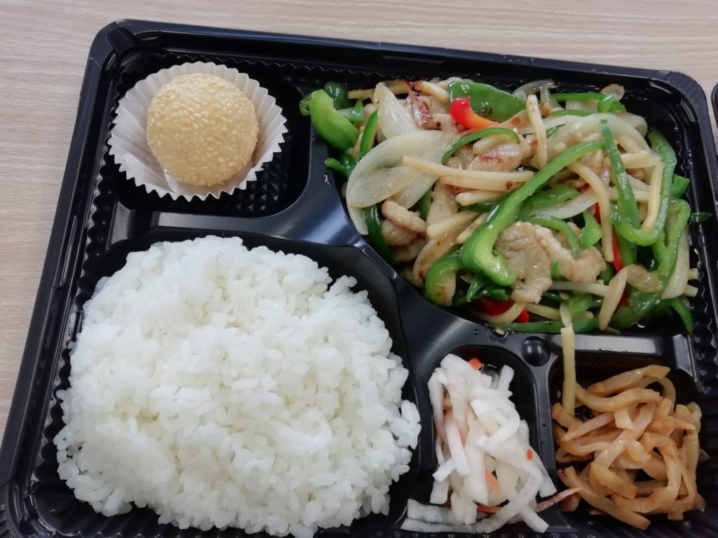 実は香港厨房でのテイクアウトは今回で2回目なんですけど、最初の時に「すごいボリューム」って思って、写真を見てみるとご飯とオカズが逆なのに気づき、これを載せるとお店の人に悪いかなと思って今回再度テイクアウトをしたんです。