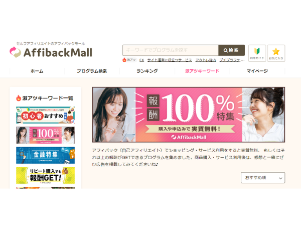 • 購入金額の100%が成果報酬となるセルフバック商品がある。